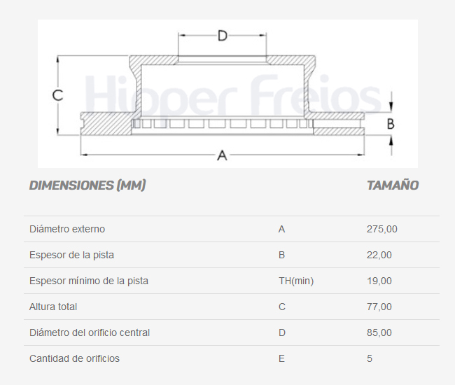 Diametro externo (mm): 275