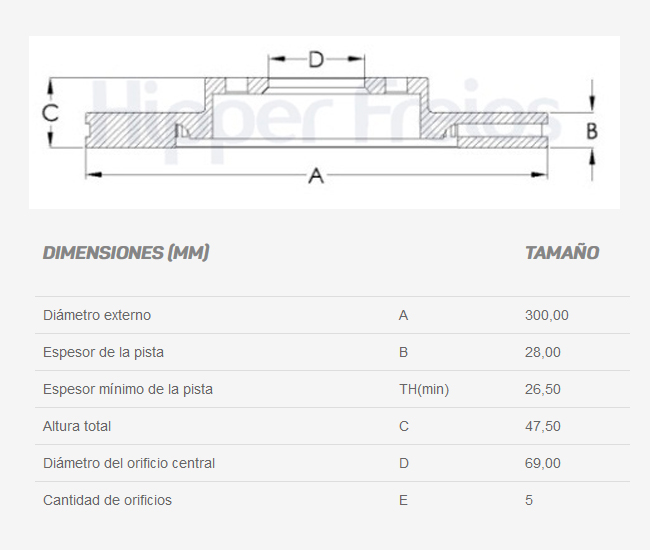 Espesor de la pista (mm): 28