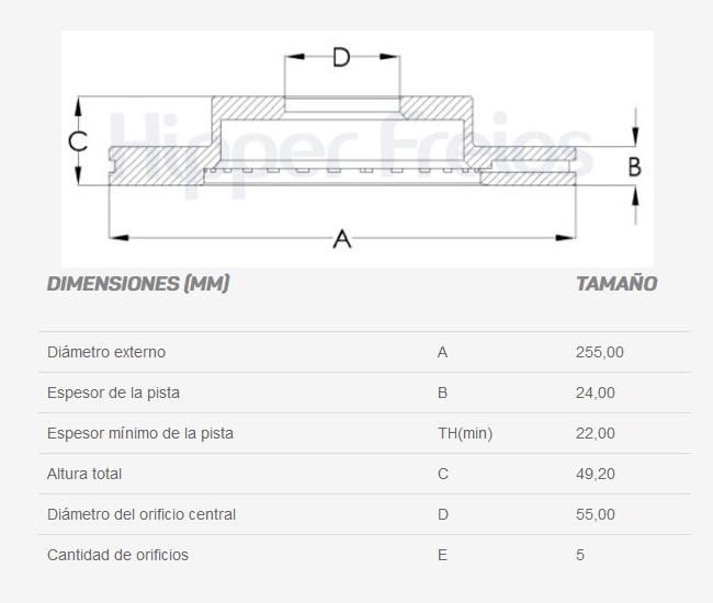 Diametro externo (mm): 255