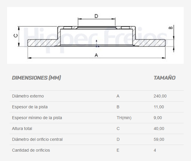 Espesor de la pista (mm): 11