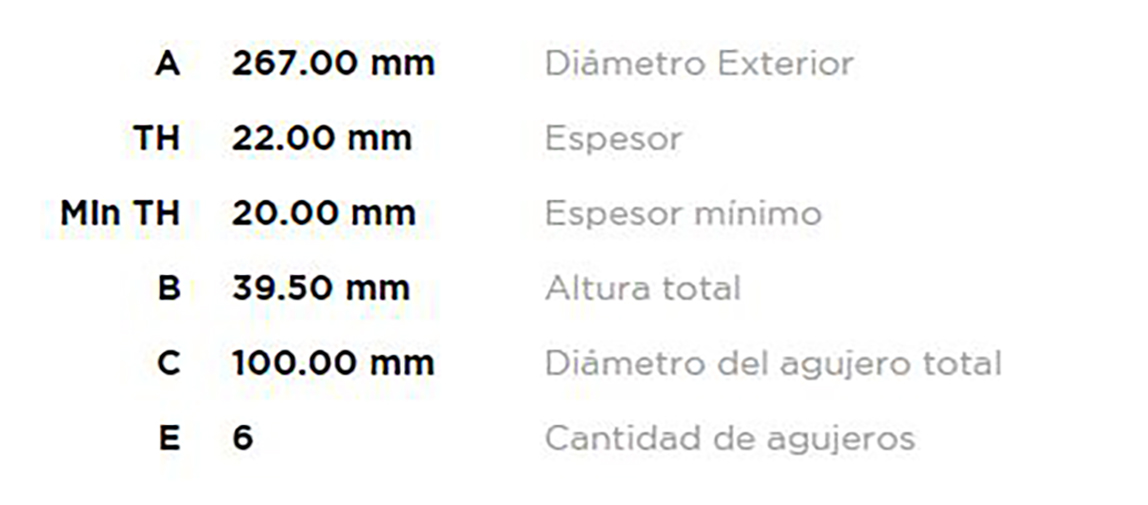 Diametro externo (mm): 267