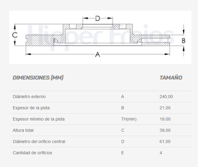 Espesor de la pista (mm): 21