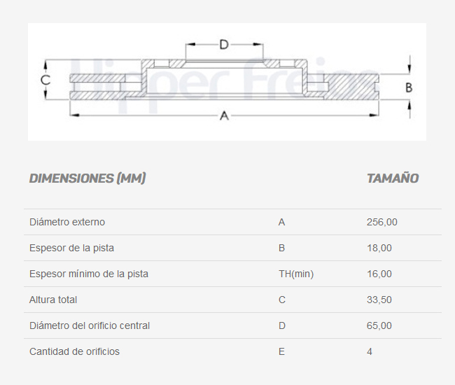 Espesor de la pista (mm): 18