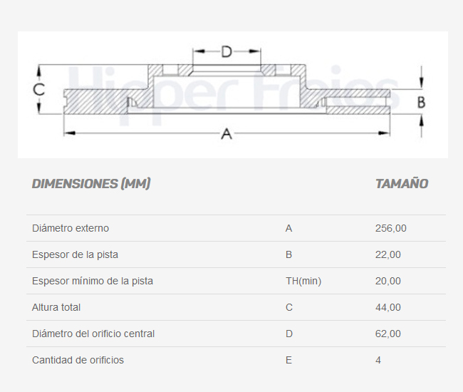 Diametro externo (mm): 256
