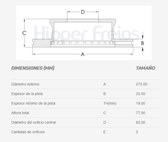 Espesor de la pista (mm): 22