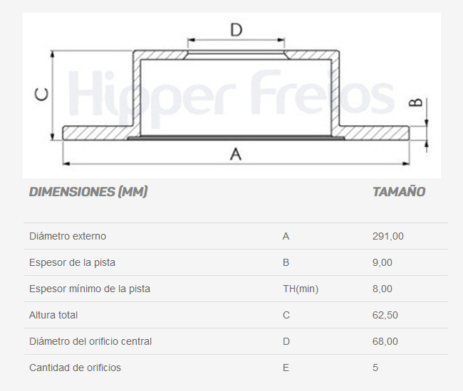Diametro externo (mm): 291