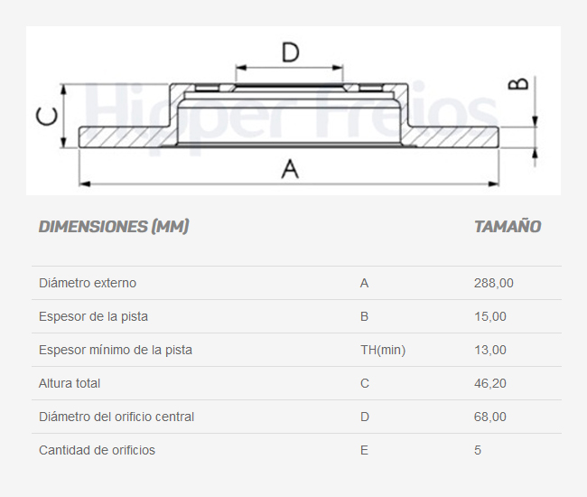 Diametro del orificio central (mm): 68